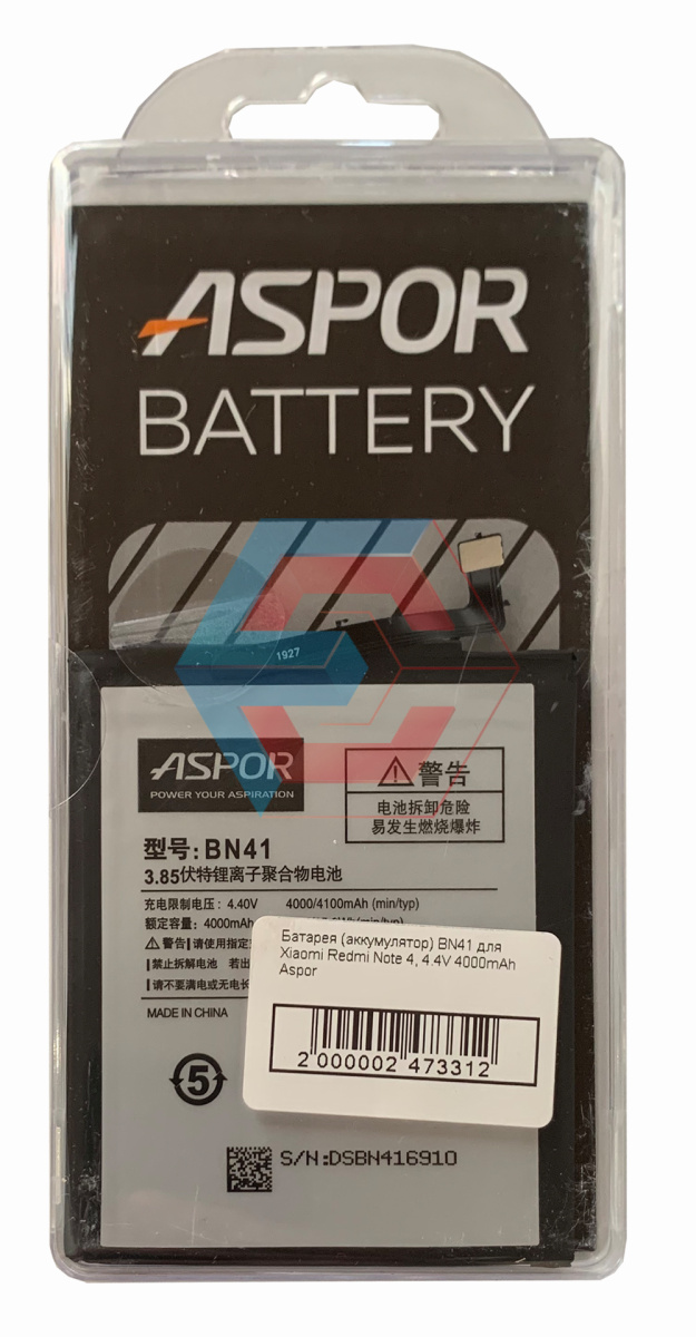Акумуляторна батарея BN41 для Xiaomi Redmi Note 4, 4.4V 4000mAh Aspor