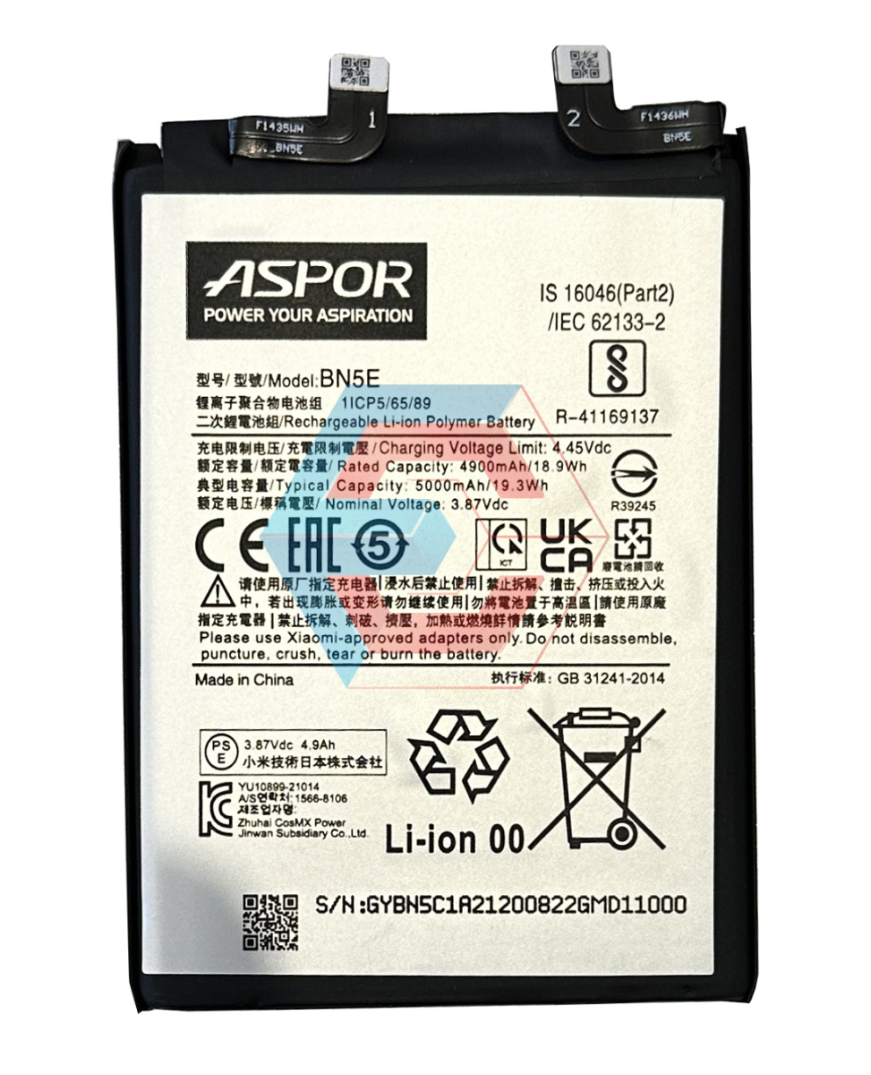 Батарея (акумулятор) BN5E для Xiaomi Redmi Note 11E Pro 100% ємності (Aspor) - ёмкость, состояние, распиновка