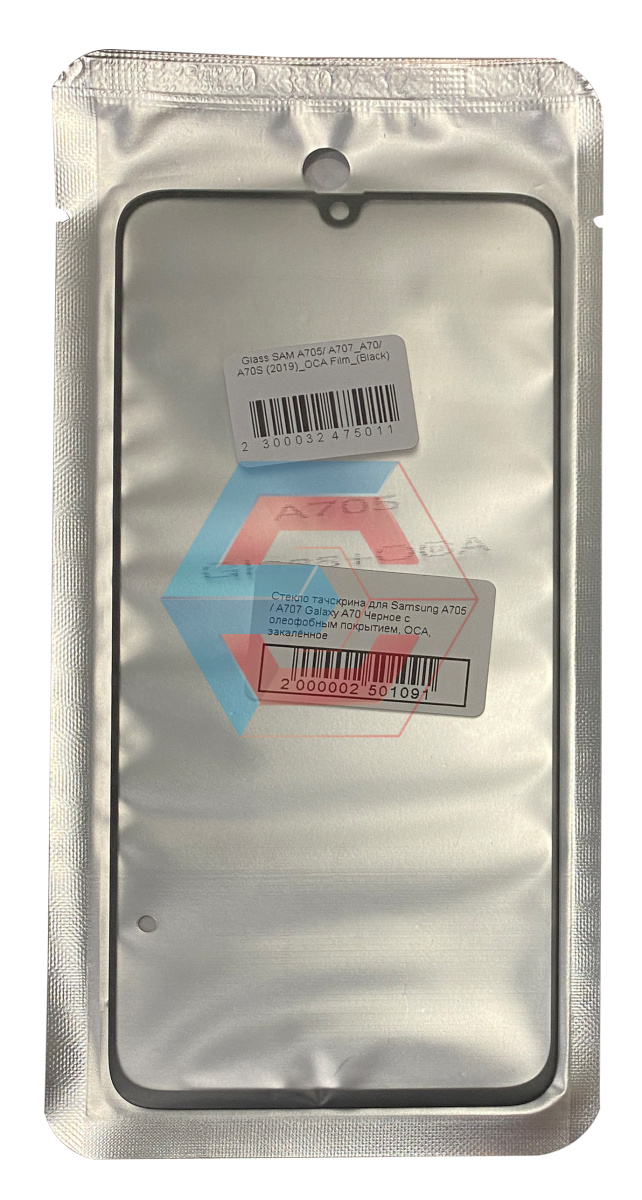 Стекло тачскрина для Samsung A705 / A707 Galaxy A70 Черное с олеофобным покрытием, OCA, закалённое