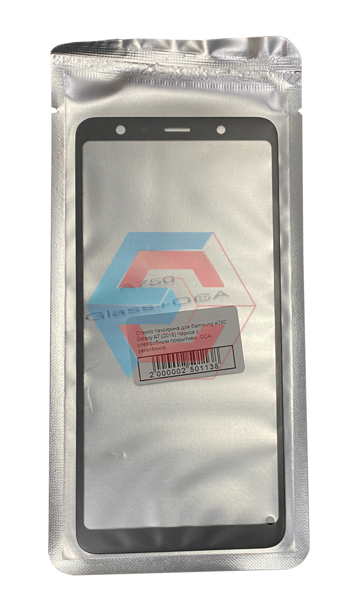 Стекло тачскрина для Samsung A750 Galaxy A7 (2018) Черное с олеофобным покрытием, OCA, закалённое