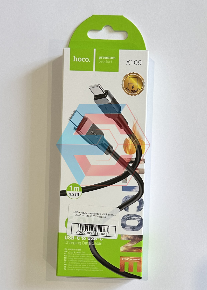 USB-кабель (шнур) Hoco X109 Silicone Type-C to Type-C 60W Чорний